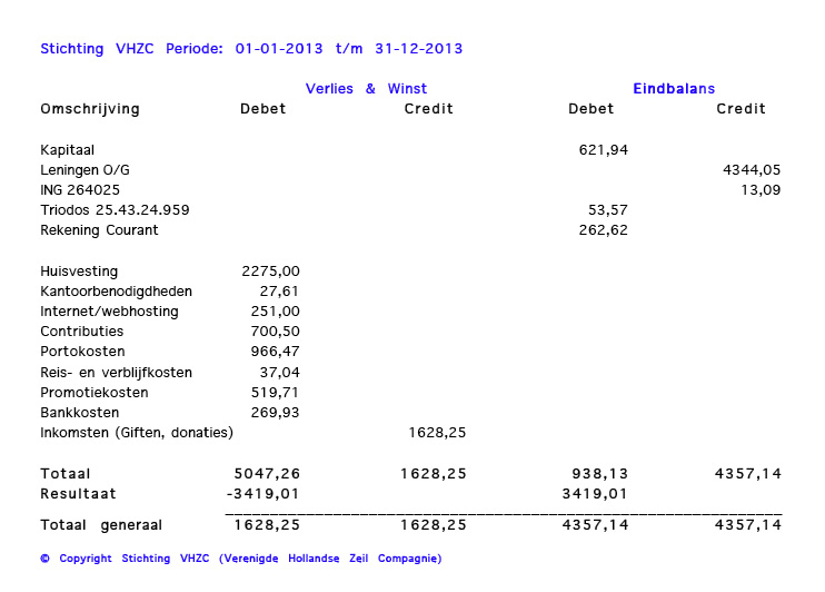 De stichting Verenigde Hollandse Zeil Compagnie is eind 2009 opgericht en een Algemeen Nut Beogende Instelling (ANBI) sinds 1 januari 2011. ©2008 -2019 Stichting Verenigde Hollandse Zeil Compagnie - V H Z C |
