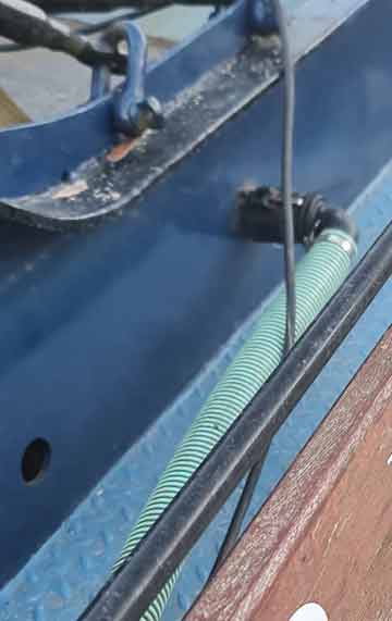 De aansluiting voor de riolering aan dek als ook